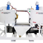 The CG-500-3X8/A grout plant is a complete grouting system that combines a high-pressure double-acting plunger pump with two high-efficiency paddle mixers to permit continuous pumping as each mix tank alternates feeding the pump. The double-acting plunger pump is designed for simple conversion between different pressure outputs as well as reduced disassembly time for cleaning and maintenance. Both mixers are equipped with baffles, bag breakers and variable speed high-efficiency paddles that provide rapid mixing.